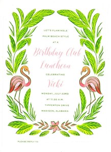 What fun I had hosting my Birthday Club at a Palm Beach-style luncheon. Starting with these adorable invitations from Dixie Designs,